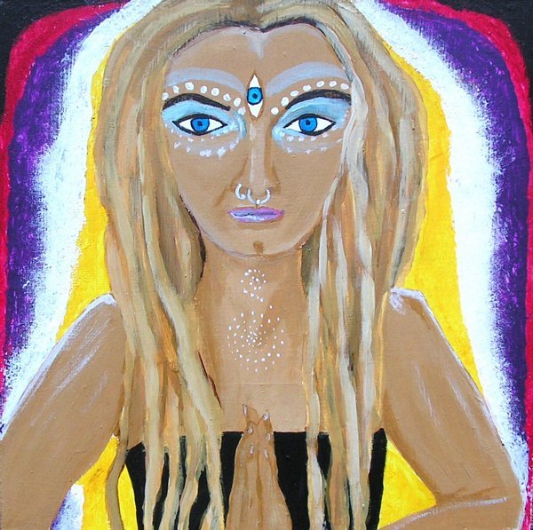 Soliel.. sun Goddess sparkling with glitter and mirrors in the bright blue sky.